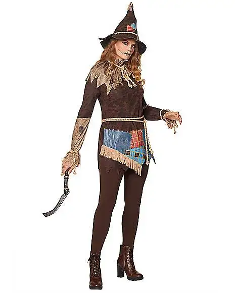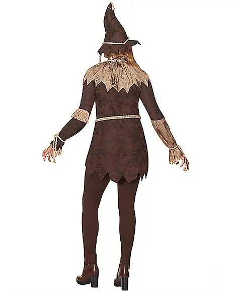 You won’t have any problems scaring the crows away in this creepy scarecrow costume featuring a classic tunic top, hat, collar, rope belt and scythe! No one will dare to come near you when wearing this terrifying outfit.