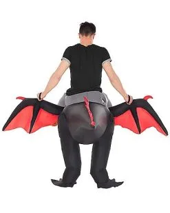 Fly into Halloween and explore new heights with this Piggyback Dragon Inflatable Costume! With your new pal on your side, Halloween won’t be able to scare you away from a fun-filled evening. This dragon is strong, but make sure that you don’t fall off!