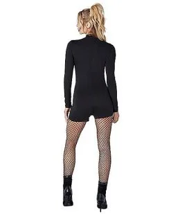 Get to rompin’ around in this skeleton romper! Featuring long sleeves, shorts, and a bold skeleton print, this flattering romper will make you feel both spooky and cute. Pair it with your best black boots and haunting makeup (sold separately) for a beautifully bony look!
