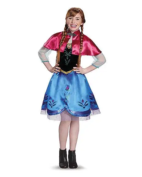 You’ll be ready to trick-or-treat in this officially licensed Frozen Anna Girls Tween Costume! You’ll look stunning in this dress with its blue, petal like skirt and sheer blue overlay that matches the sheer sleeves. The velvety black top is outlined in gold and features an Anna character cameo, and the entire dress features pink and green flower details. Finally, put on the pink capelet that you’ll need once Elsa starts making it snow!