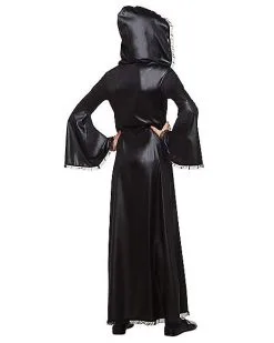Your child will go absolutely batty when they wear this gorgeous Vampiress costume! The black dress is hooded and features red accents in the center and down the length of the skirt, and glittery bats cover the red to give the dress an even more hauntingly fabulous design.