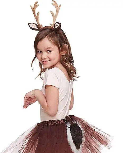 Oh, deer! How cute your little one will be in this deer costume kit! Complete the animal look with this clip on take and antler headband!