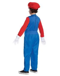 Rescue Princess Peach from the clutches of the evil Bowser on Halloween when you wear this officially licensed Mario Bros. Mario Deluxe Boys Costume. The red and blue character jumpsuit comes complete with a matching red hat, detachable inflatable belly, gloves and a faux mustache.