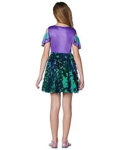 Get ready for nautical night of fun with this elegant mermaid dress, fished straight from the sea and available exclusively at Spirit Halloween! This beautiful dress features a colorful blue and purple top and a scaly green bottom that shimmers like the sea! Complete with a headband adorned with stylish starfish, this dress is the perfect addition to the wardrobe of any mermaid-to-be.