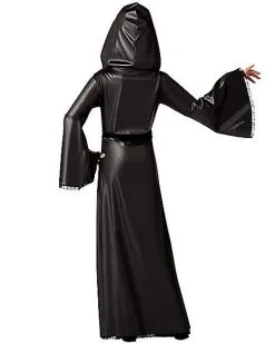 Spin your webs and magic in the Spider Sorceress Girls Witch Costume. This webby witch wears a long hooded dress with purple insets featuring spider web details and a spider brooch.
