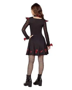 Vampire classes are now in session. Look just like a student at a terrifying vampire academy when you get all dressed up in this Vampire Academy Dress Costume. This stylish black dress features see through sleeves adorned with a bat pattern and a red details for a look that’ll have you standing out.