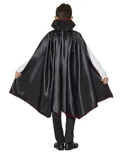 If your little one is thirsty for blood, this vampire deluxe costume is exactly what they need! Let your little guy drink their fill on Halloween when he wears this stylish vampire costume! Velvet cop features bell sleeves and a ruffled collar with attached broach for authentic detail. Add the black pants and the included cape with velvet trim, and he’ll be ready to trick-or-treat in no time!