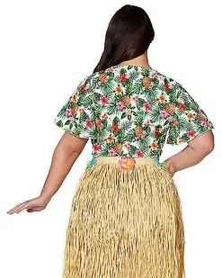 While everyone else may be dressed to scare, you’ll be ready to sit back, relax, and sip some coconut water on the beach in this plus size luau shirt! Slip the lei around your neck, and you’ll be ready for the party!