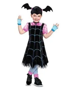 Your little one will be the cutest Vampirina in town this Halloween! Let her slip right into this officially licensed dress and fly around town! The included leggings, signature headpiece, and gloves will have her looking super authentic! Let her go a little batty this Halloween!