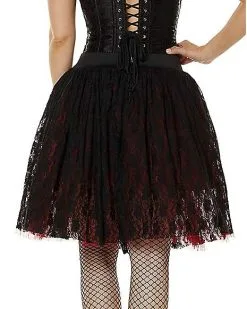 Your vampie look just got a whole lot better! This layered, lined skirt features beautiful lace detail that will have you standing out in any crowd you enter on Halloween night. Pair it with your favorite corset (sold separately) and you’ll have a complete vampire look!